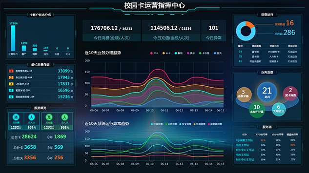 掌握师生用卡充值、消费、身份识别趋势,在减少工作量的情况下提高服务质量